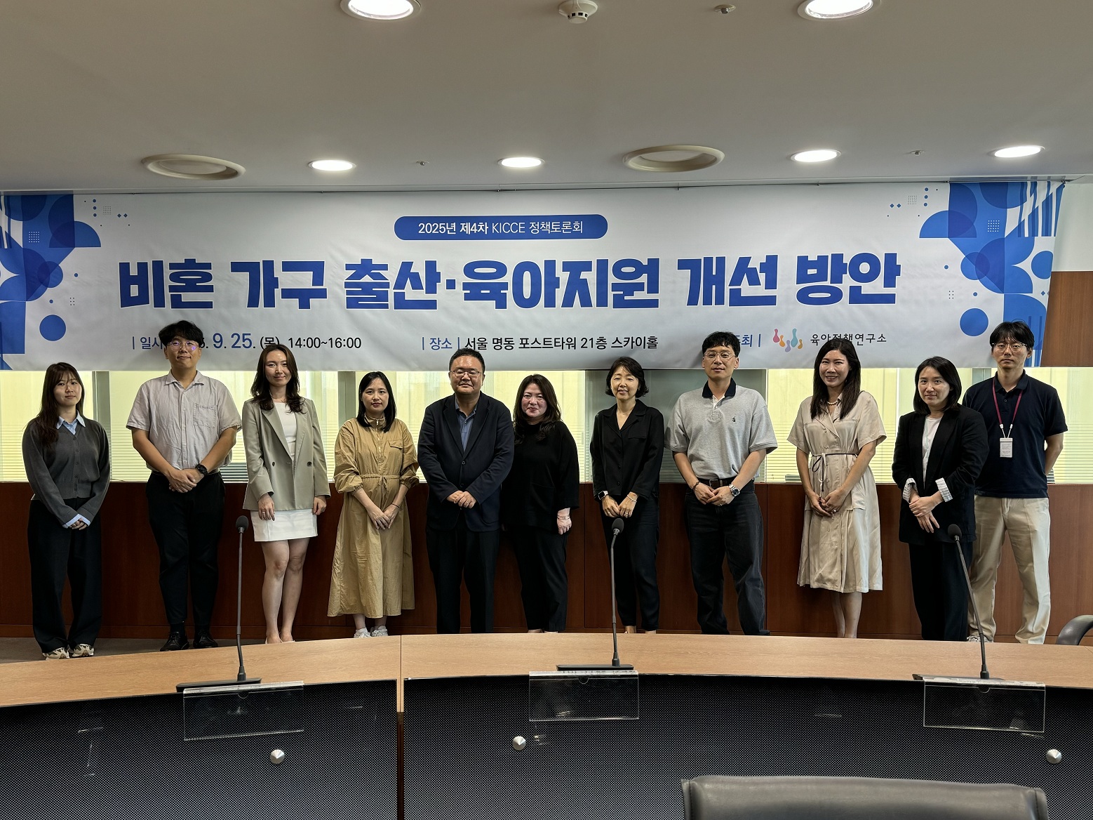 The Korea Institute of Child Care and Education (KICCE) held its 4th KICCE Policy Forum on Thursday, September 25, 2025 at 2:00 p.m. at Sky Hall (21F), Myeong-dong Post Tower, Seoul, under the theme “Policy Measures to Improve Support for Childbearing and Childrearing in Non-Marital Households.” The forum was organized as part of KICCE’s 2025 occasional research project, Policy Measures to Improve Support for Childbearing and Childrearing in Non-Marital Households, to share research findings and gather expert opinions from academia.